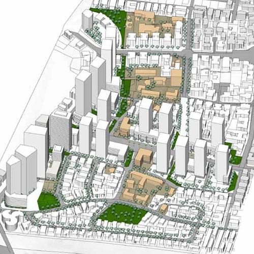 100 דירות קיימות + מסחר. לאחר מכרז בו נבחר יזם – כרגע בשלב חתימות חוזים וקידום התכנון